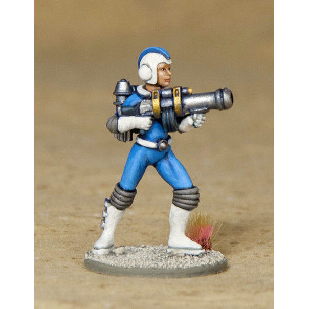 Pack contains 1 model of Astro Angel support gunner equipped with an Atomic Grenade Launcher. The pack contains one Astro Angel trooper and a separate jetpack. Miniature supplied unpainted and unassembled. Base not included. Sculpted by Ari Nielsson and painted by Matt Leahy.