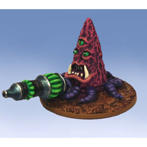 Pack contains 1 Slishian model comprised of one Slishian body and one tentacle base with death ray. Miniature supplied unpainted and unassembled. Base not included. Sculpted by Matt Beauchamp. Display model painted by Matt Beauchamp.