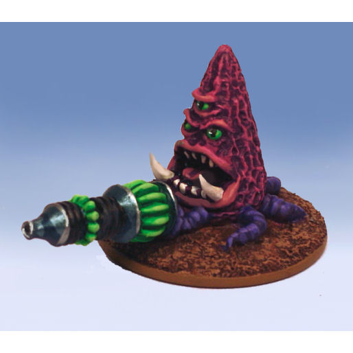 Pack contains 1 Slishian model comprised of one Slishian body and one tentacle base with death ray. Miniature supplied unpainted and unassembled. Base not included. Sculpted by Matt Beauchamp. Display model painted by Matt Beauchamp.